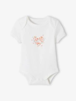 Lot De 3 Bodies Croisés Manches Longues Coeurs Bébé Naissance En Coton Bio PETIT BATEAU – Blanc